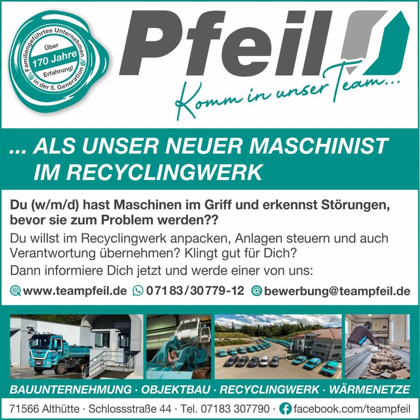 Du willst im Recyclingwerk anpacken, Anlagen steuern und auch Verantwortung übernehmen? Klingt gut für Dich?