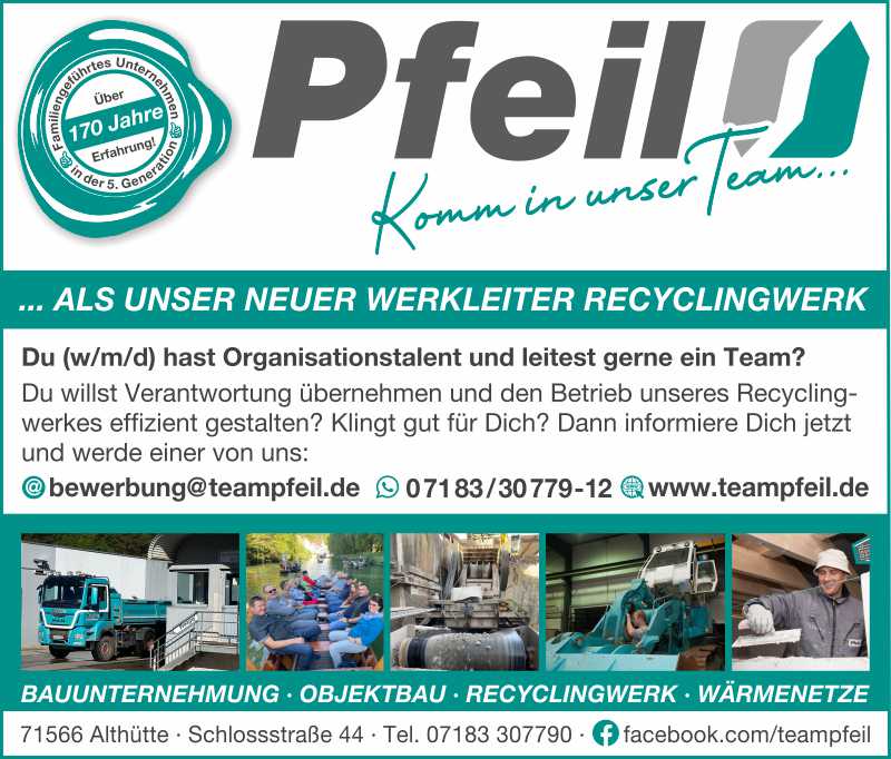 Du willst Verantwortung übernehmen und den Betrieb unseres Recyclingwerkes effizient gestalten? Dann bist du bei uns genau richtig! Klingt nach deinem nächsten Karriereschritt?